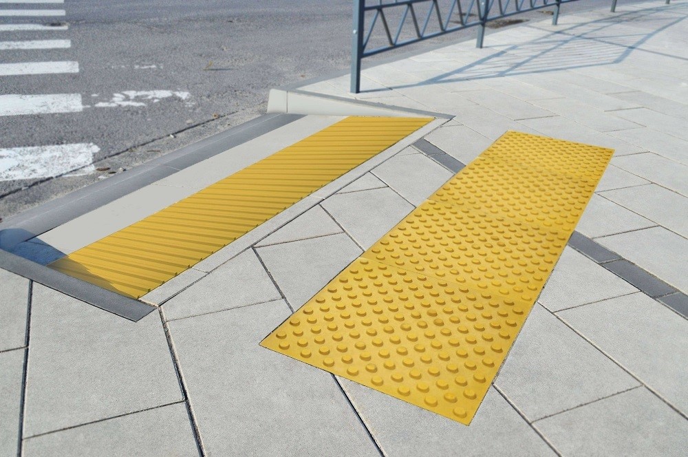 Тактильная плитка с конусообразными рифами 500x500x50 желтая